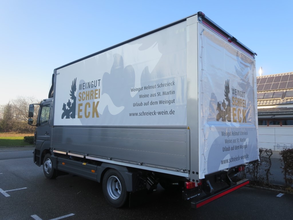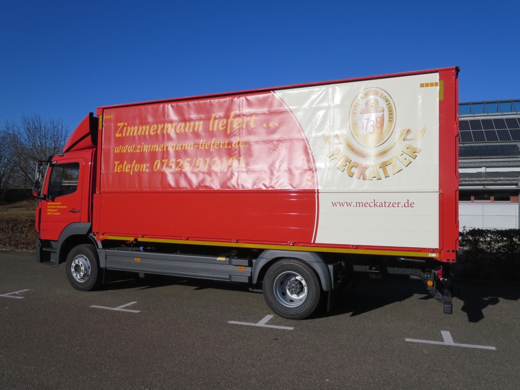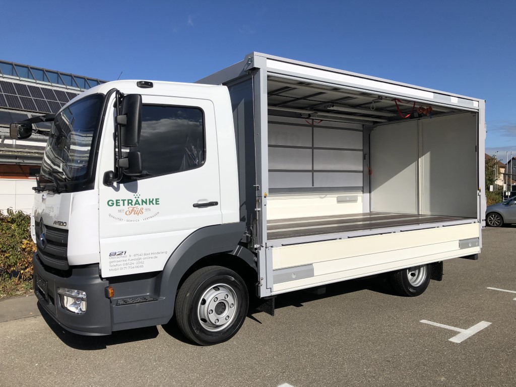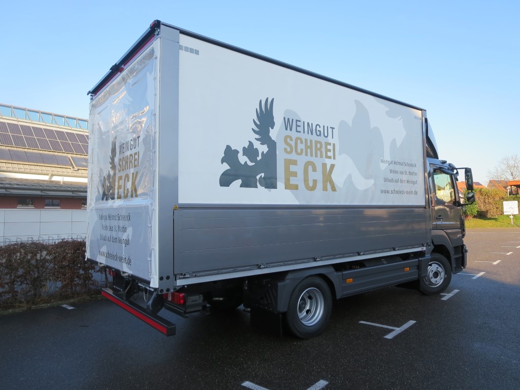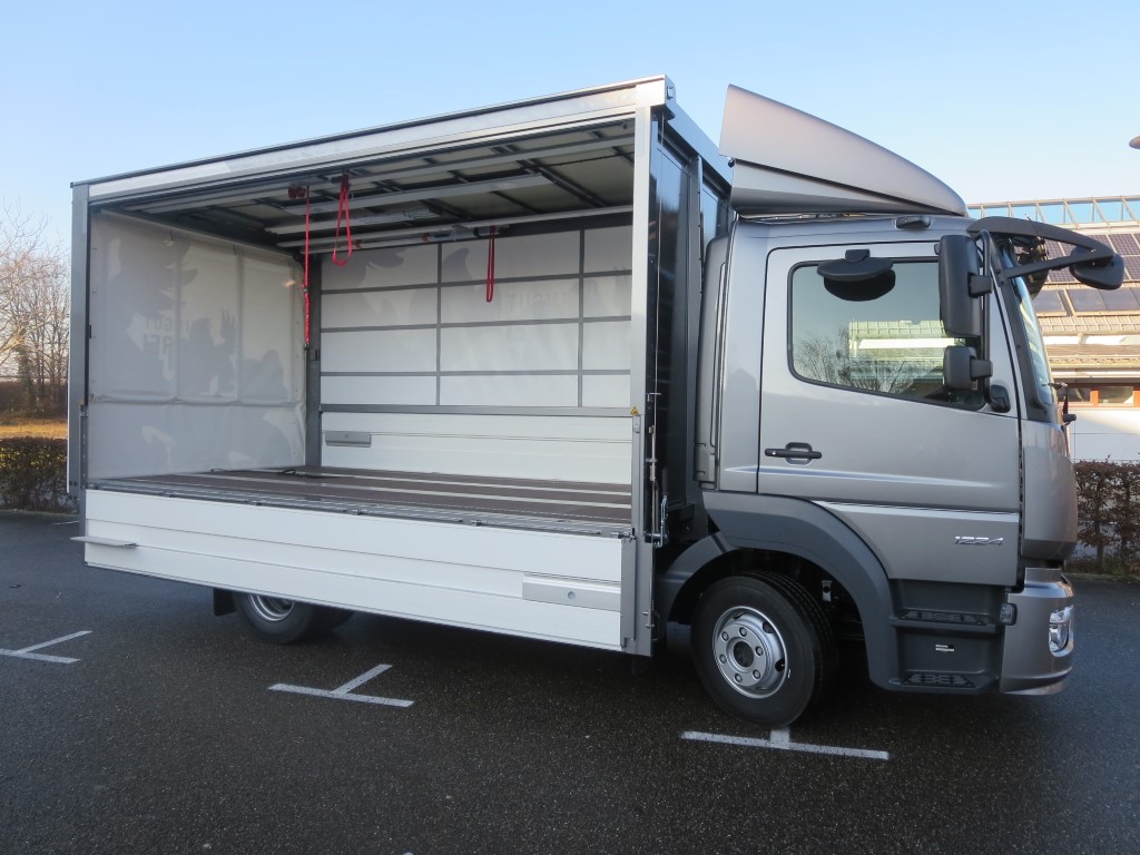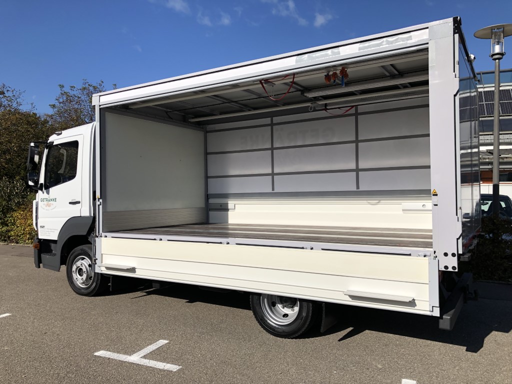 - Geschlossener Kasten, festes Alu-Dach, seitlich Alu-Bordwände, darüber die Rollplane