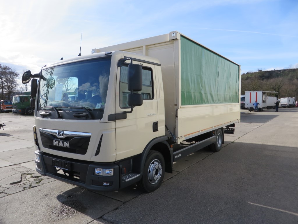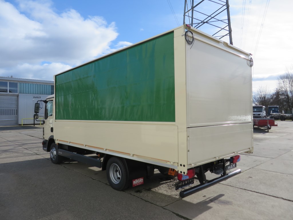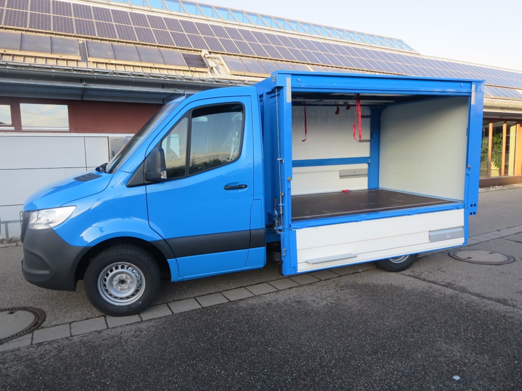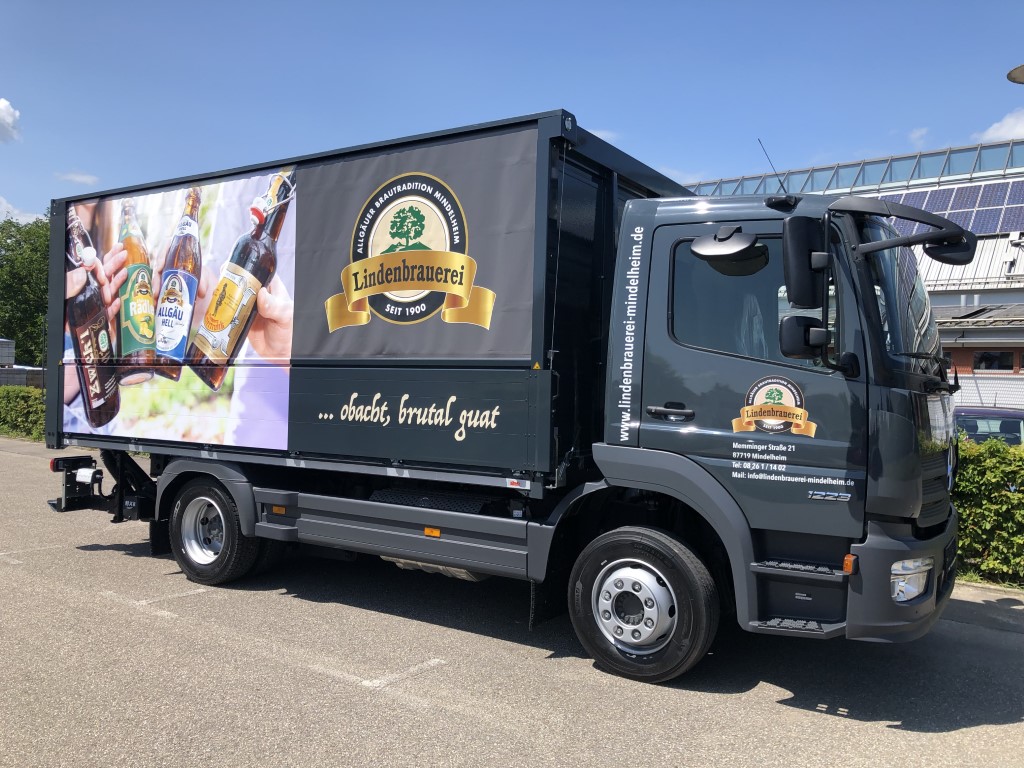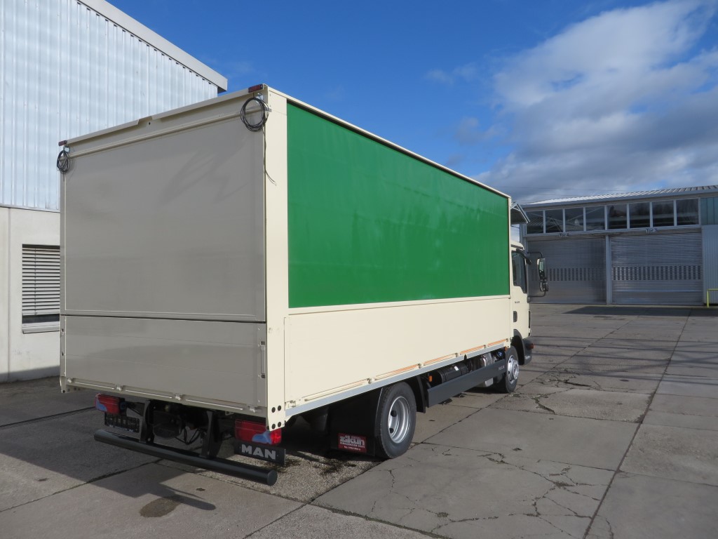 - Geschlossener Kasten, festes Alu-Dach, seitlich Alu-Bordwände, darüber die Rollplane