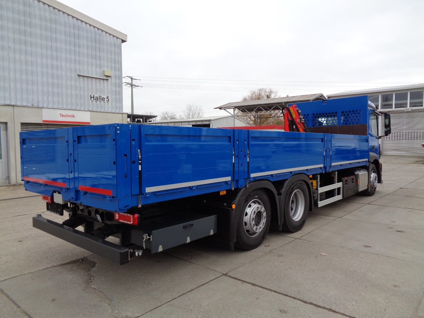Wir fertigen Baustoffaufbauten in verschiedenen Längen und Ausführungen, passend für zahlreiche Fahrgestelle. Je nach Bedarf können Optionen wie Alu-Bordwände, verstärkte Ladeflächen, Werkzeugkästen oder Vorrüstungen für Ladesysteme integriert werden. Zusätzlich besteht die Möglichkeit, den Aufbau mit einem leistungsstarken Ladekran zu kombinieren. Dadurch lassen sich Baustoffe direkt vor Ort heben, positionieren und abladen, was die Einsatzmöglichkeiten deutlich erweitert.