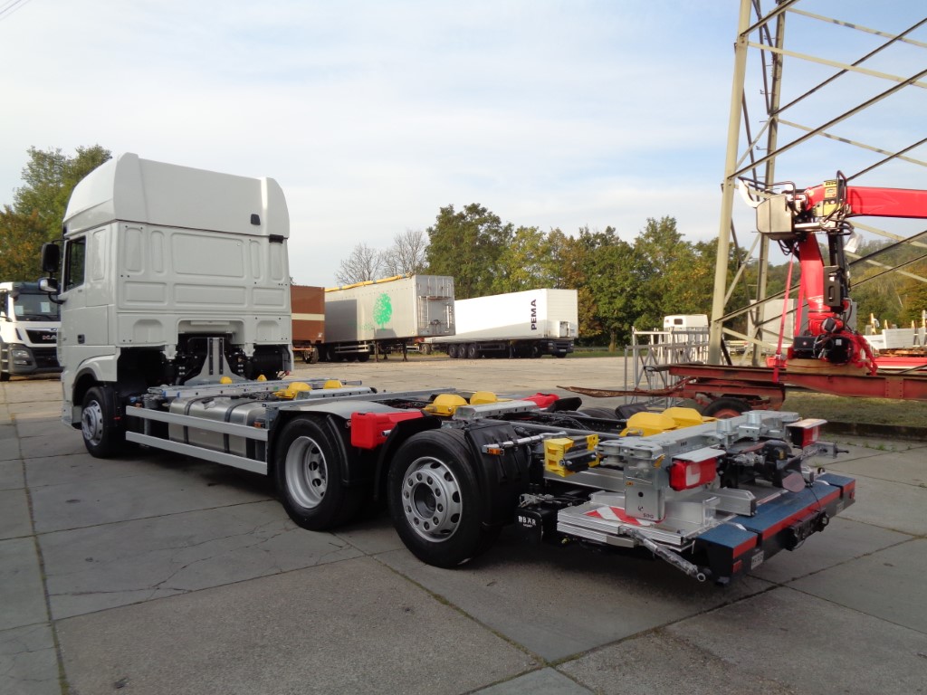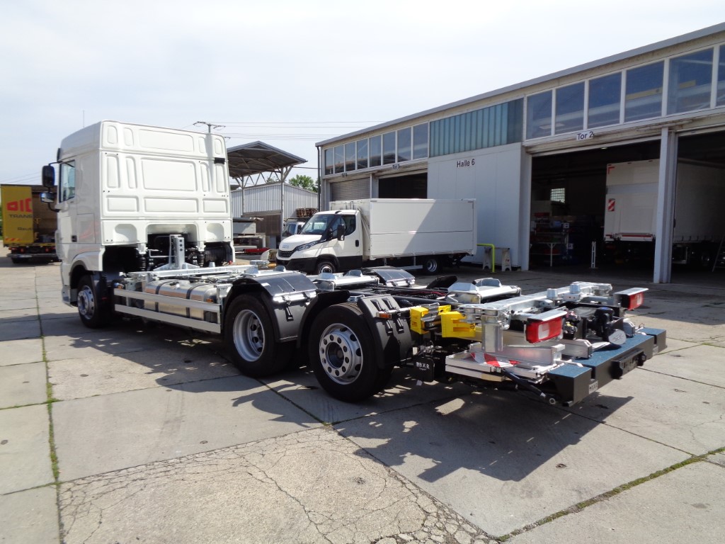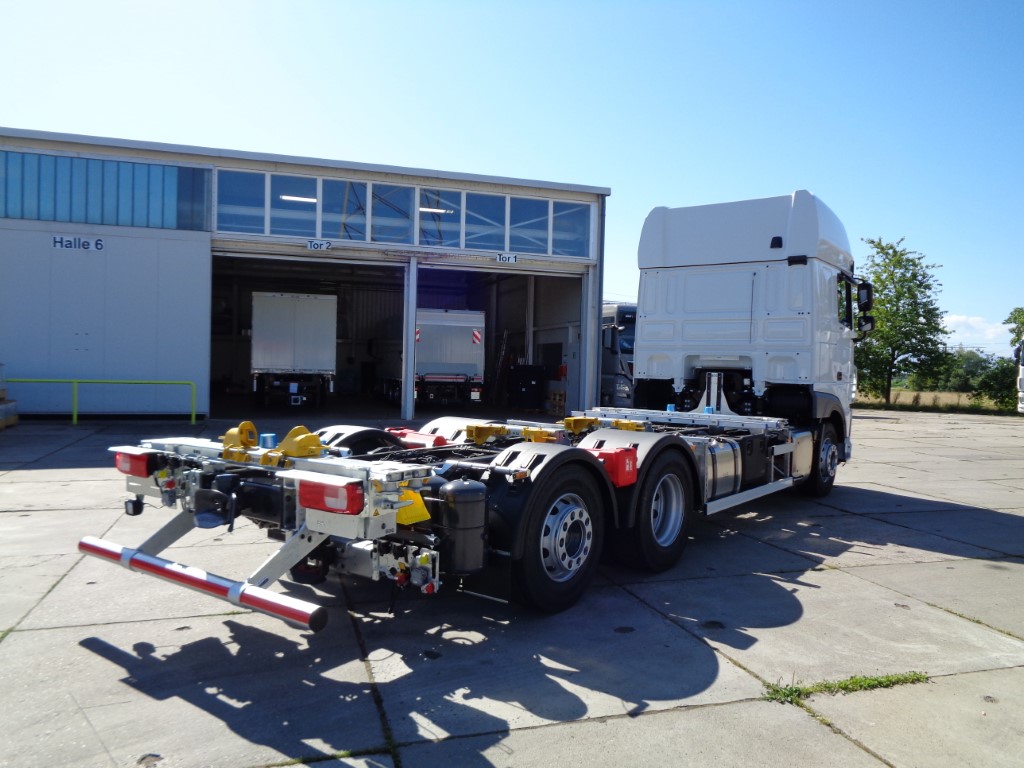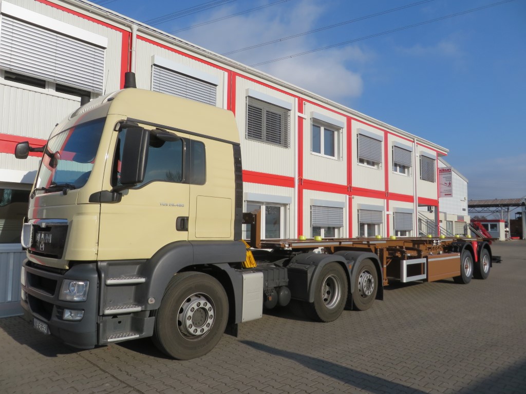 Dank des Wechselfahrgestells können Container sicher aufgesetzt und wieder abgenommen werden, ohne dass Kran oder Gabelstapler benötigt werden. Dies reduziert Leerfahrten, spart Zeit und ermöglicht eine effiziente Nutzung der Lkw-Kapazitäten.