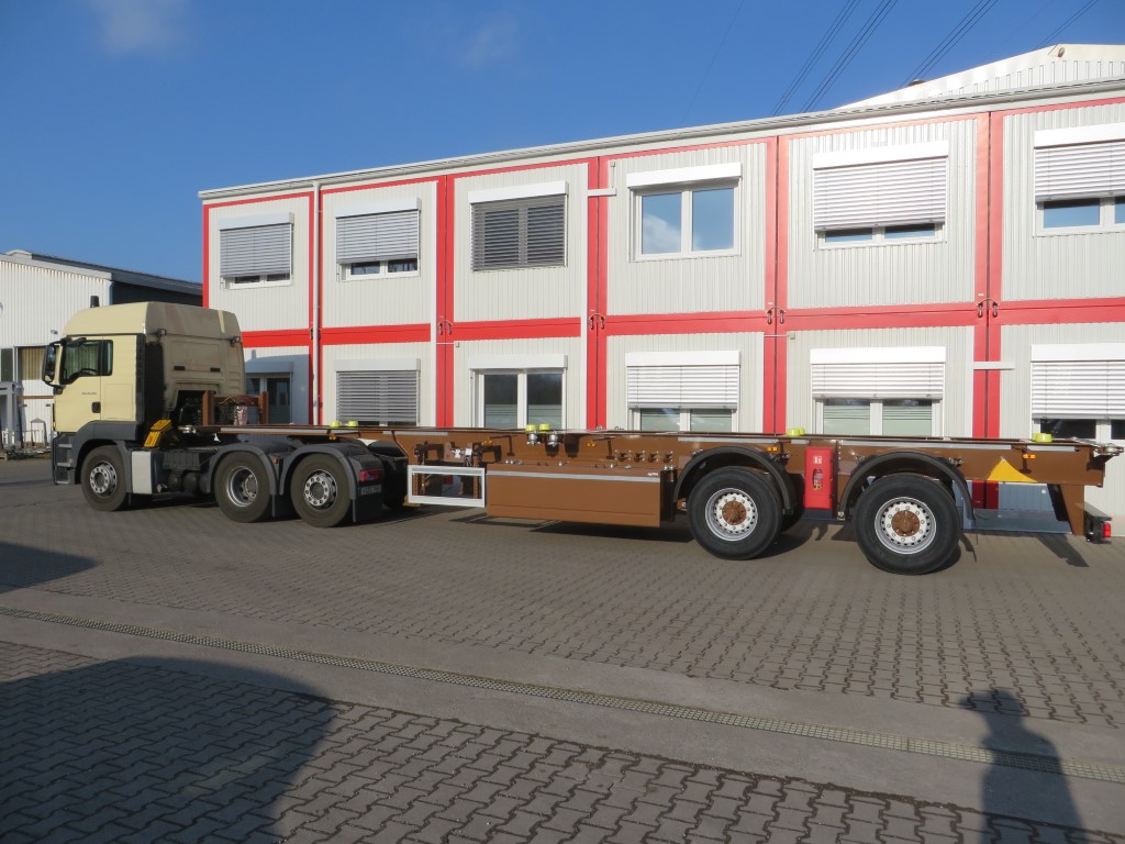 Mit BDF-Containersystemen lassen sich Standard-Container, Schiebeplanen-Container, Kühlcontainer und Tankcontainer sicher transportieren. Ein einziges Fahrgestell kann somit für verschiedene Transportaufgaben genutzt werden.