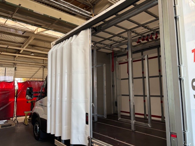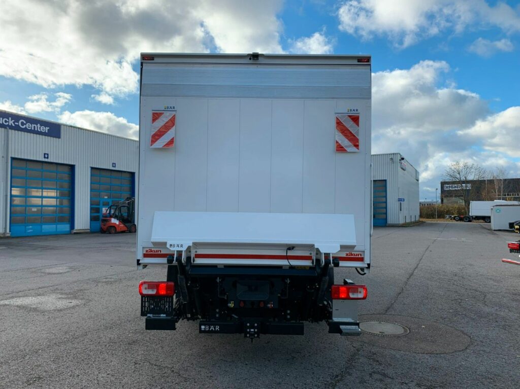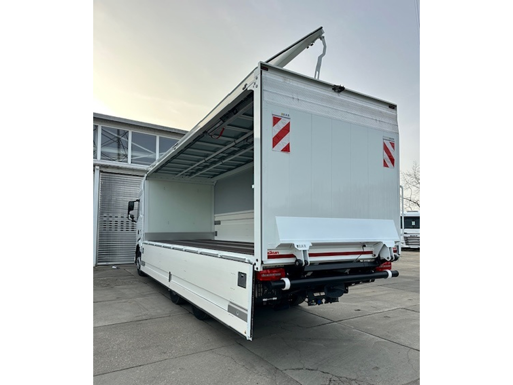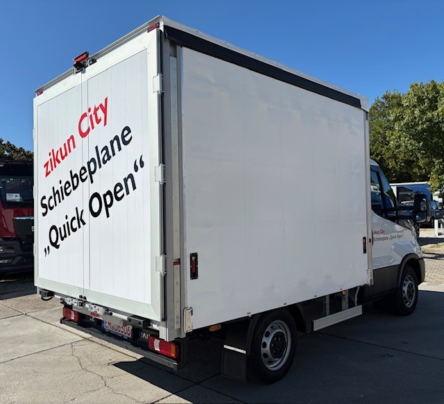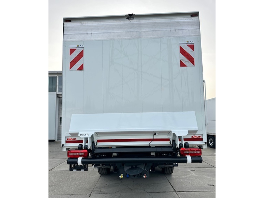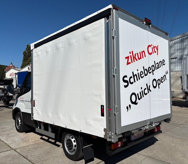 | Aufbau: | Zikun City Schiebeplane "Quick Open" mit 2-flgl. Hecktür, L: 2.900 x B: 2.100 x 1.900 mm, 4 Reihen Sperrbalken, Innenbeleuchtung als LED-Leiste, Rückfahrkamera |