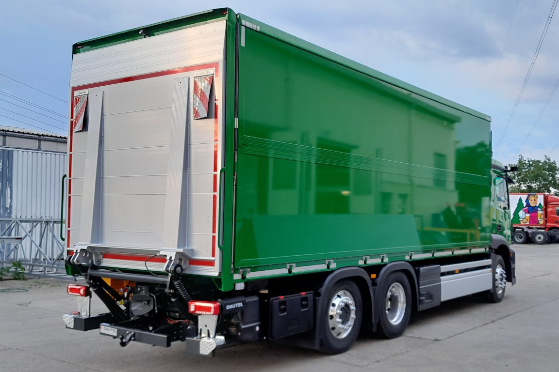 SWING BOARD II mit Ladebordwand auf vollelektrischem Volvo-Chassis