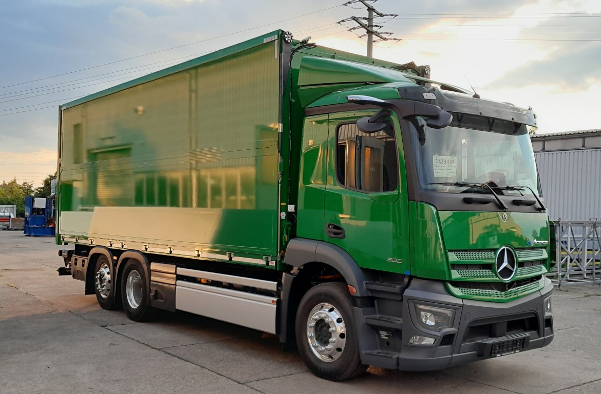 SWING BOARD II mit Ladebordwand auf vollelektrischem Mercedes-Chassis