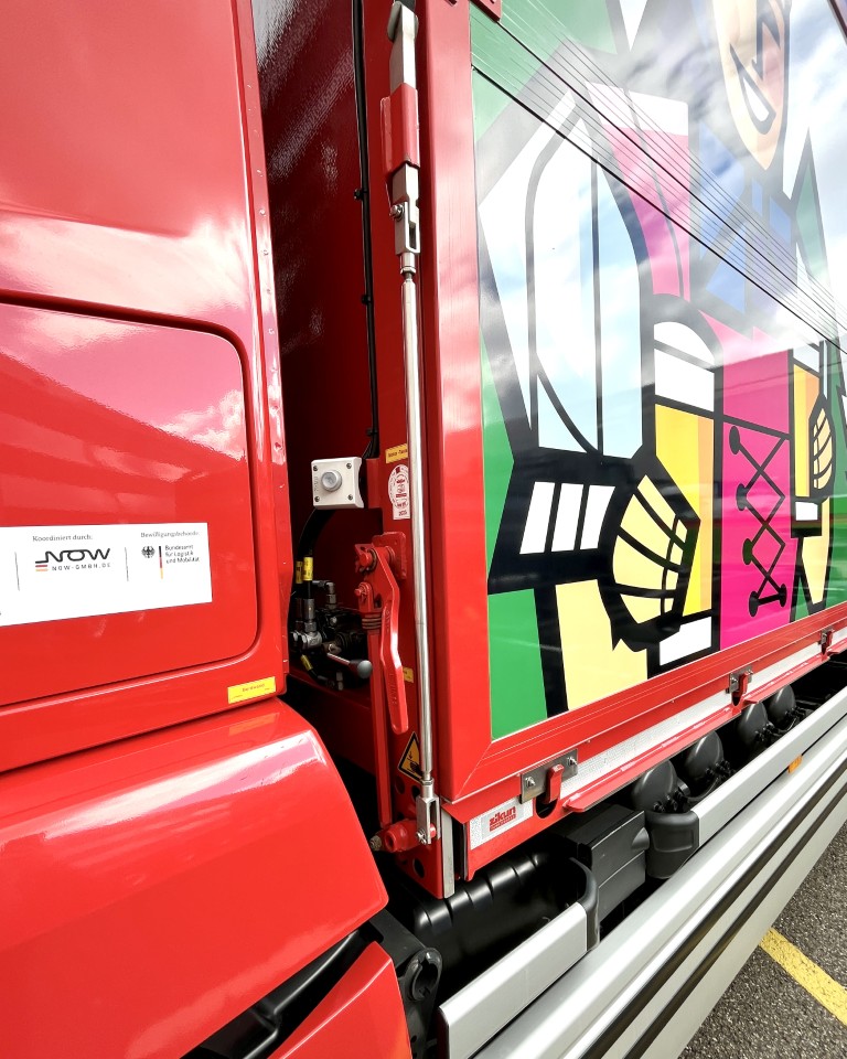 Die seitlich angebrachten Batteriepakete vollelektrischer Lkw stellen besondere Anforderungen an den Aufbau. Klassische Schwenkklappenlösungen können hier schnell an ihre Grenzen stoßen, da sie beim Klappen nach unten nicht bündig anliegen.