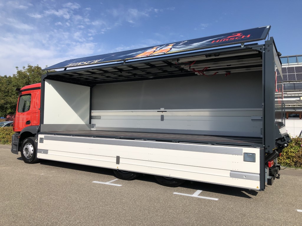 - Komplett nach oben schwenkendes elektro-hydraulisches Klappwandsystem