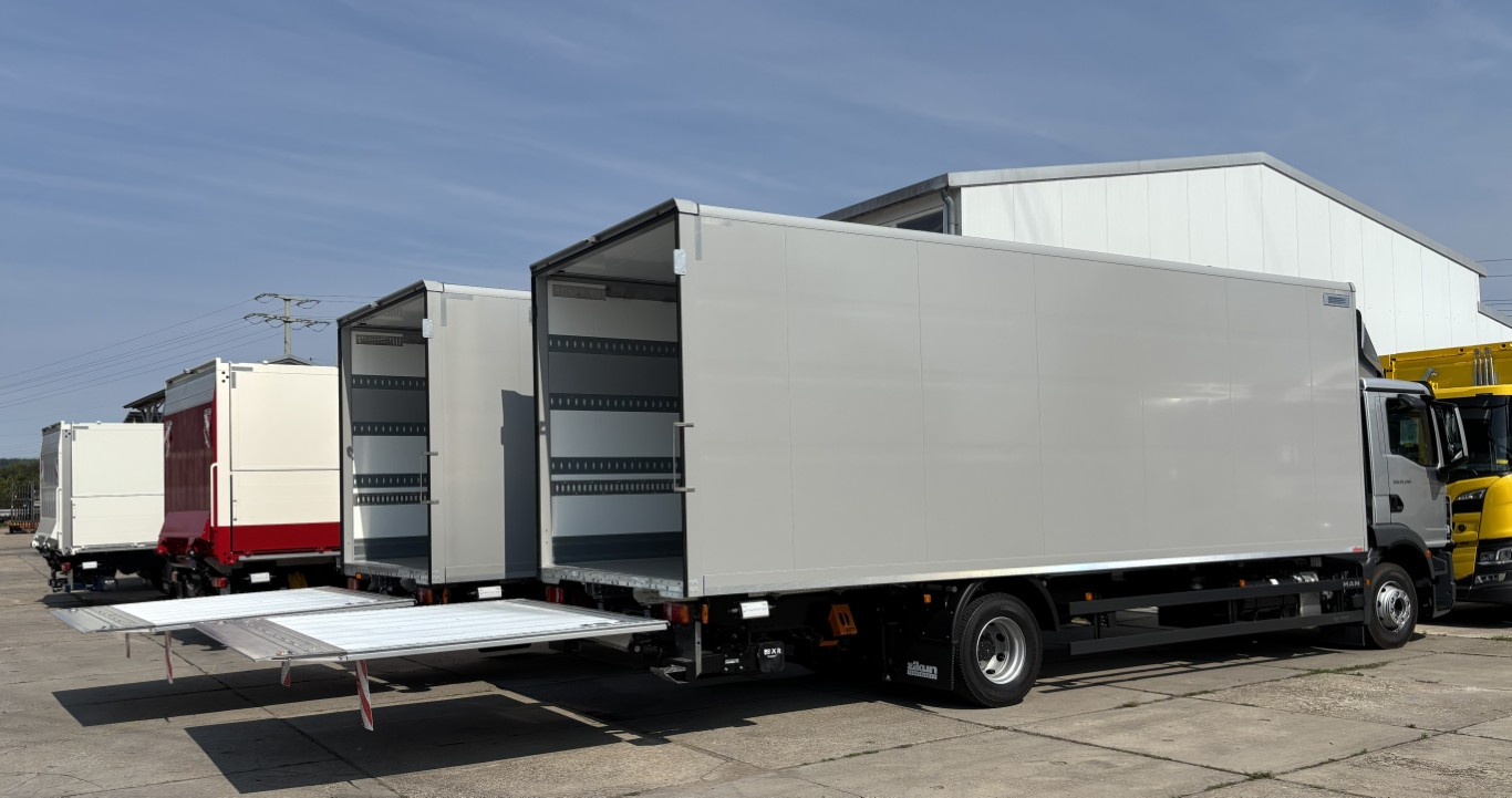 Dank der klar strukturierten Innenräume lassen sich Kofferaufbauten besonders effizient nutzen. Ob für palettierte Waren, Kartonage oder technische Geräte, die Ladefläche kann individuell angepasst und optimal organisiert werden. Dies sorgt für eine hohe Auslastung und unterstützt einen wirtschaftlichen Transportablauf.