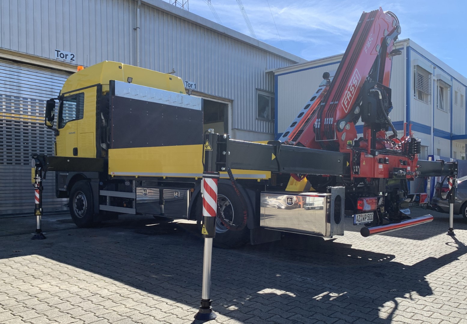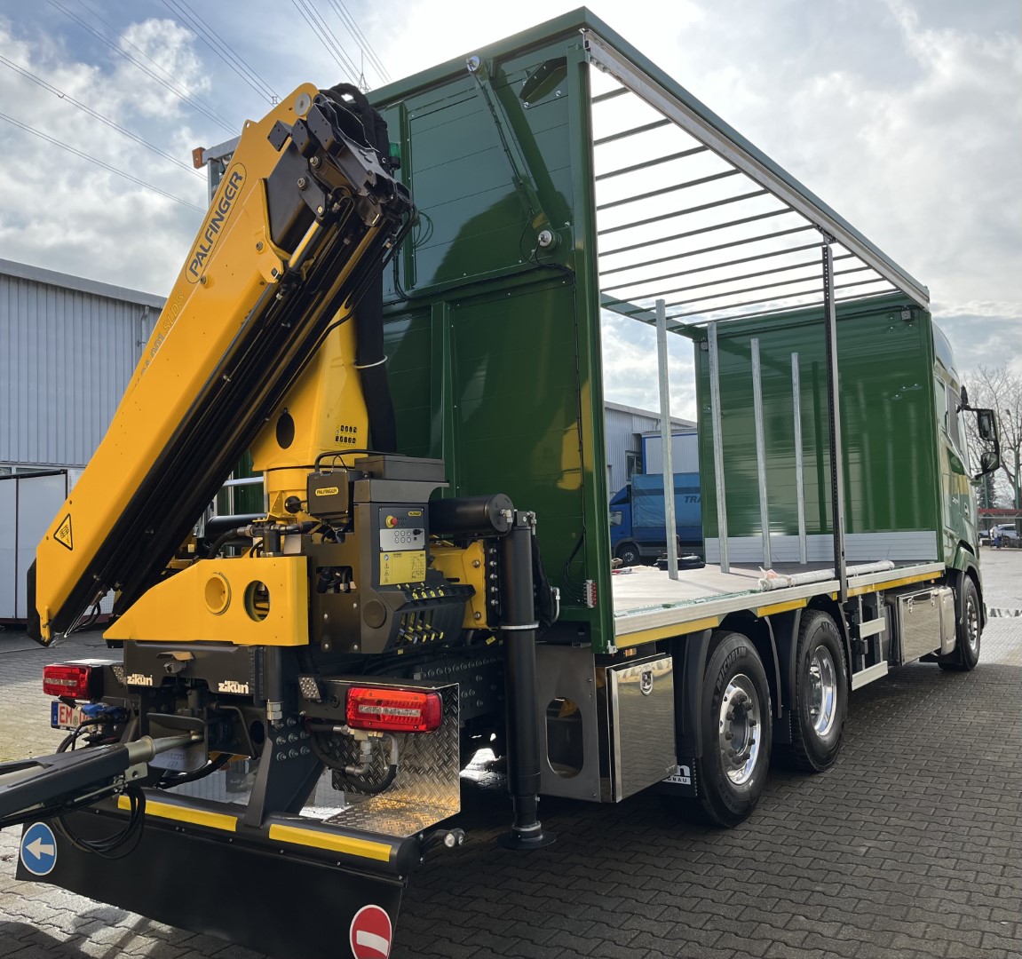 Für die Kranaufbauten werden Krane führender Hersteller wie Palfinger und Fassi eingesetzt. Diese Marken stehen für zuverlässige Hydrauliktechnik, langlebige Komponenten und hohe Leistungsfähigkeit, sodass die Aufbauten auch unter anspruchsvollen Bedingungen robust bleiben.