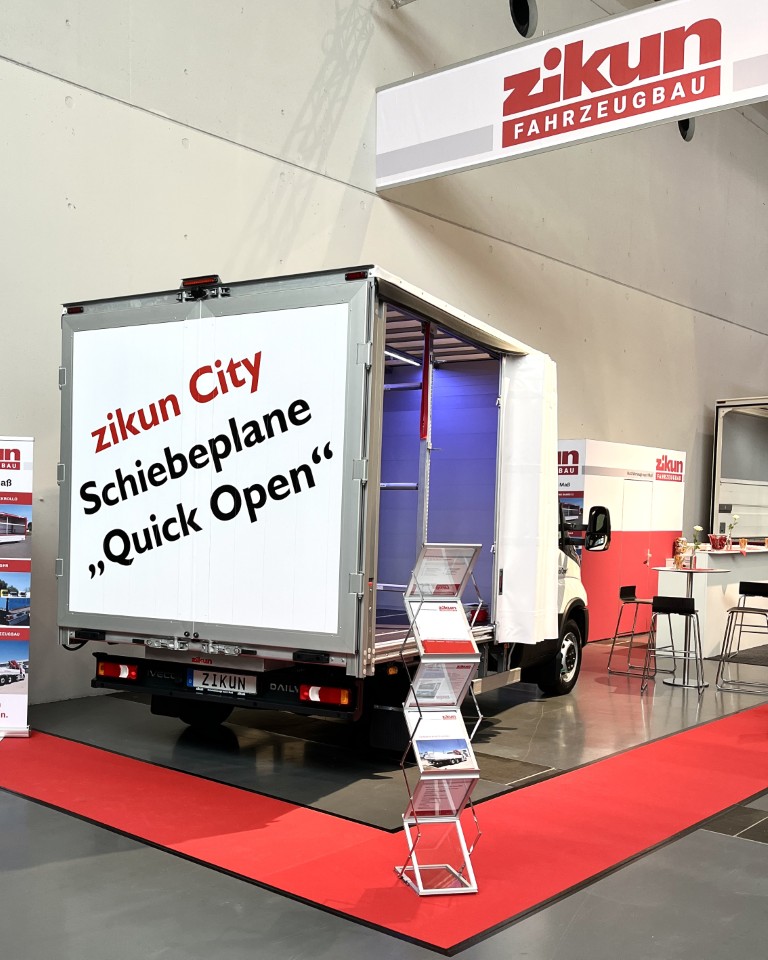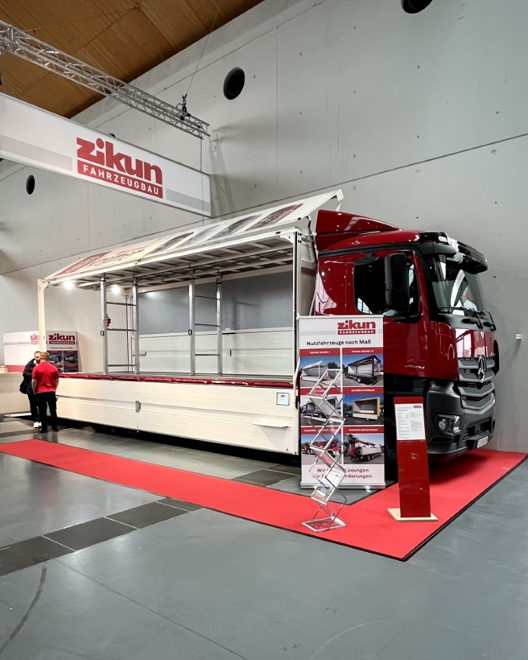 Die NUFAM 2025 in Karlsruhe war für uns ein großer Erfolg. An unserem Stand in Halle 1 konnten Besucher unsere vielseitigen Lösungen im Fahrzeugbau live erleben. Besonders viel Aufmerksamkeit erhielten der mechanische Klappwandaufbau Swing Board I sowie die zikun City Schiebeplane Quick Open. Beide Systeme zeigten eindrucksvoll, wie einfach und effizient moderne Aufbauten im Verteilerverkehr funktionieren können.