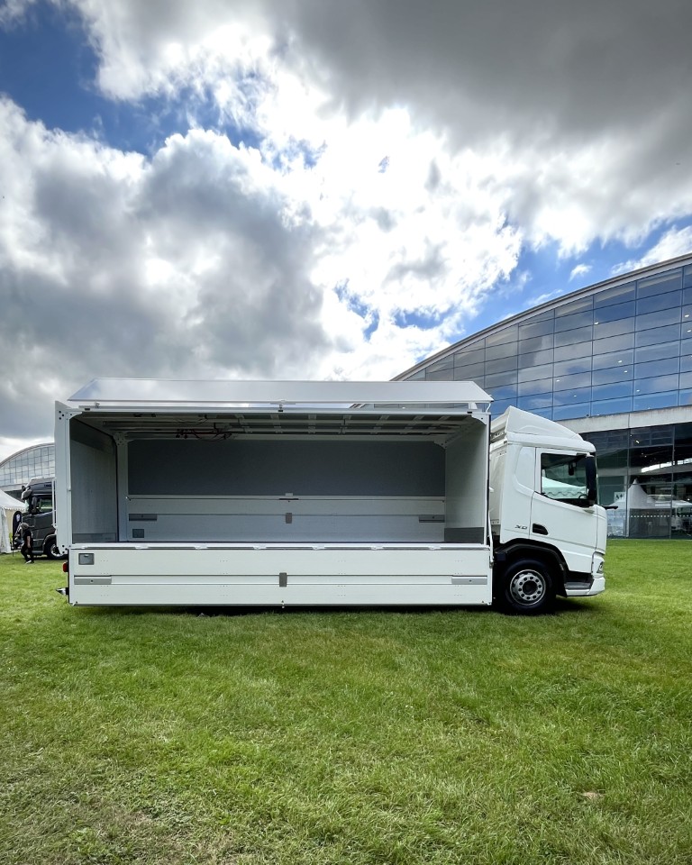 Auch auf der Kommunalmeile waren wir vertreten. Dort präsentierten wir ein Kundenfahrzeug, den vollelektrischen Mercedes-Benz eActros der Badischen Staatsbrauerei Rothaus AG, ausgestattet mit unserem hydraulischen Swing Board II. Dieses Beispiel zeigte, wie leistungsfähig unsere Aufbauten selbst im Zusammenspiel mit neuesten Fahrzeugtechnologien sind.