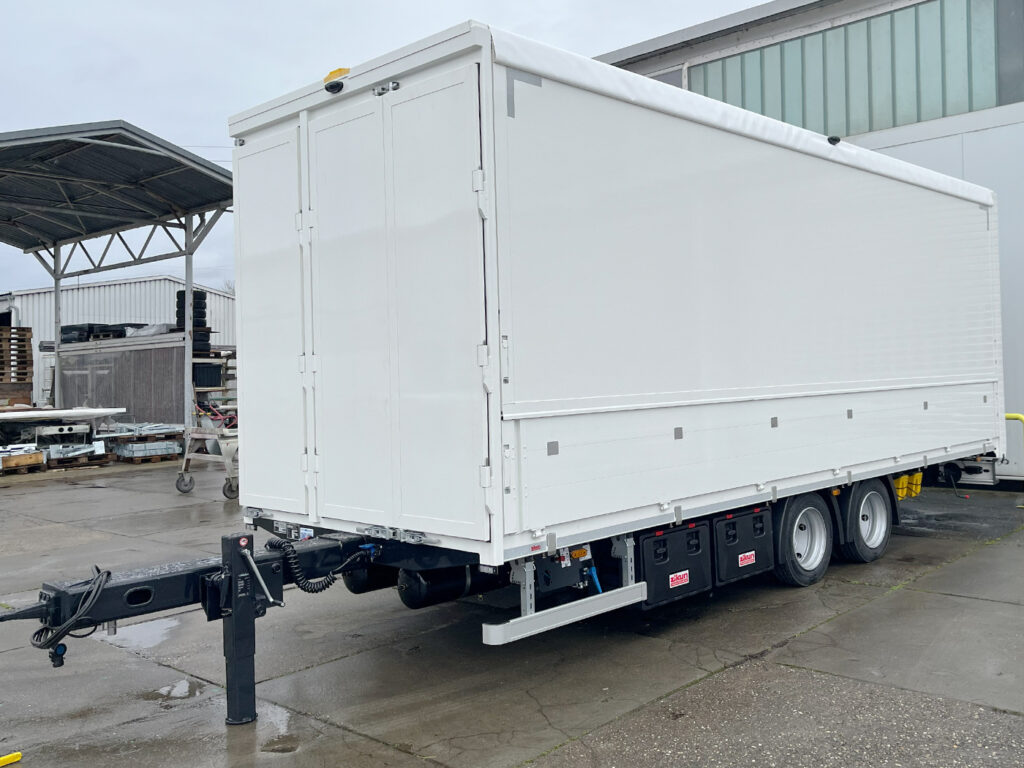 Herzstück des Projekts ist ein ZIKUN Zentralachs-Anhänger mit speziellem Kofferaufbau, der exakt auf die mobile Abfülltechnik des Kunden abgestimmt wurde. Bei der Entwicklung lag der Fokus darauf, optimale Arbeitsbedingungen für den mobilen Abfüllbetrieb zu schaffen und gleichzeitig eine hohe Stabilität sowie eine komfortable Bedienung zu gewährleisten. Hierzu verfügt der Anhänger über eine Luftfederung mit Hub- und Absenkfunktion. Dadurch lässt sich das Fahrzeug optimal an unterschiedliche Einsatzorte anpassen und erleichtert sowohl das Arbeiten vor Ort als auch das Be- und Entladen der Technik. Für ein möglichst geringes Eigengewicht bei gleichzeitig hoher Stabilität sorgt ein Stahl-Leichtbaurahmen. Die Zwillingsbereifung gewährleistet zudem eine sichere Straßenlage und eine gleichmäßige Lastverteilung.
